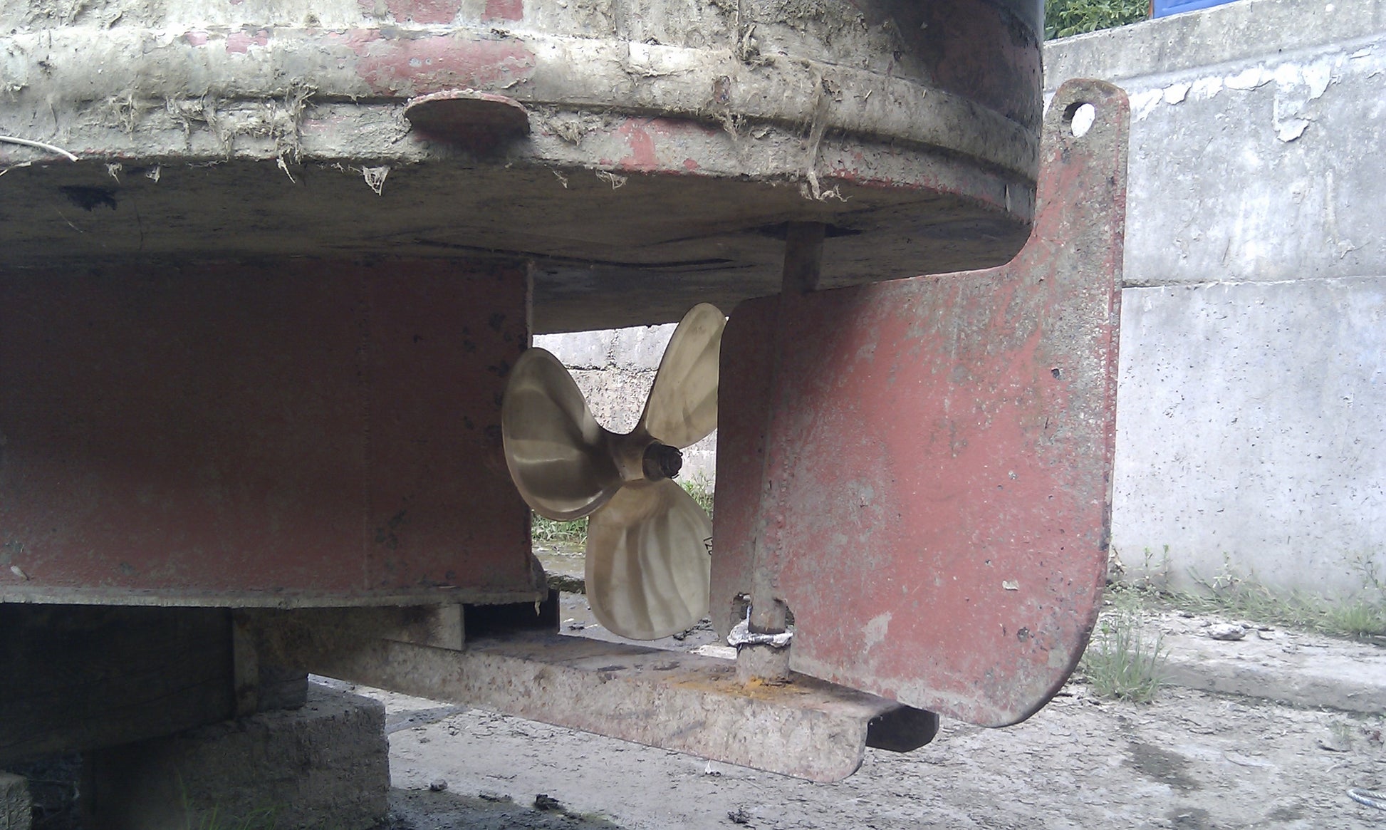 In 2011 the propeller shaft was removed and the bearings inspected then replaced, the propeller was polished by Woodwards in Hull at the same time. Anodes found in good conditions and wire brushed in 2011 to reactivate them but have hardly done any work.